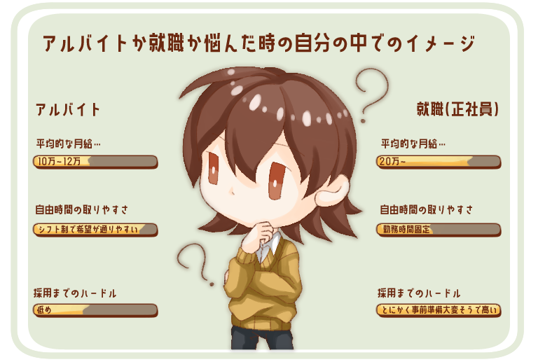 以前は私自身も「就職を諦めてバイト始めた方が…」と就職活動に対するモチベーションが低迷することが多々ありました。