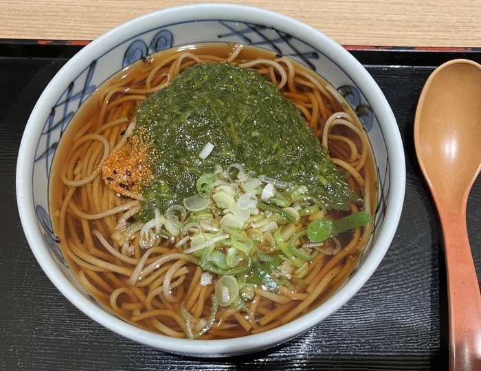 新幹線で東京に帰る前に秋田駅構内にある蕎麦屋さんで 「アカモク蕎麦🍜」をいただきました。