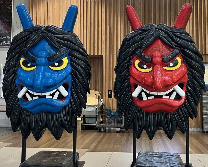 鷹巣駅に到着 北秋田は太鼓が有名なのですね🪘