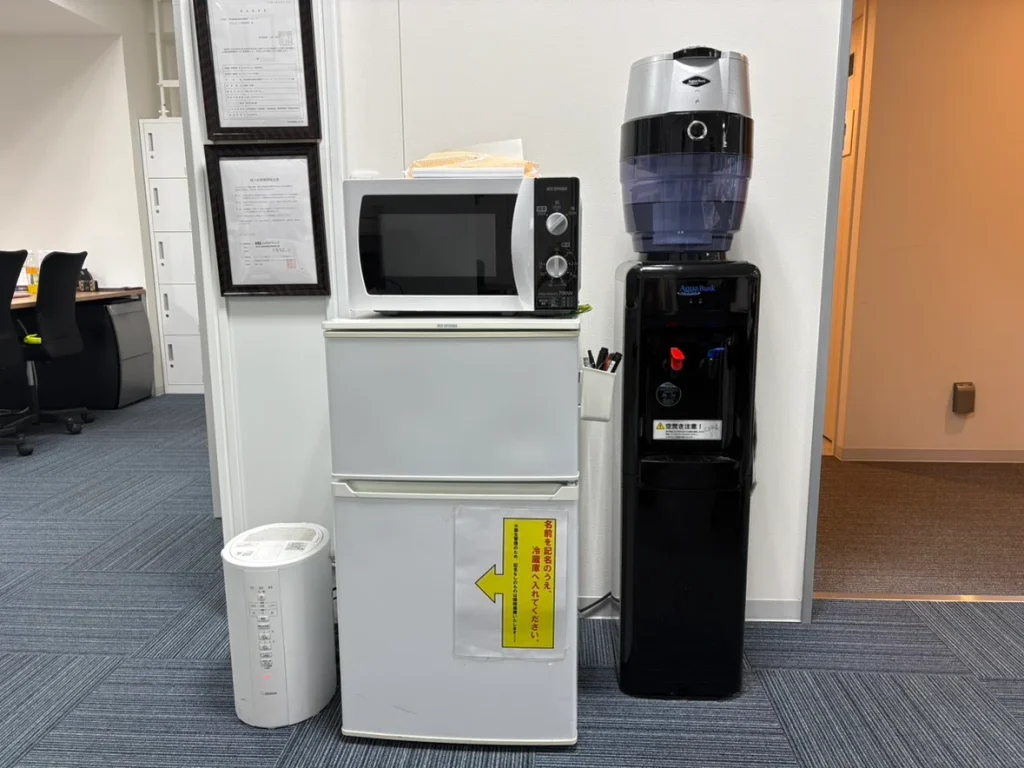 ウォーターサーバー、冷蔵庫、電子レンジを完備しています!