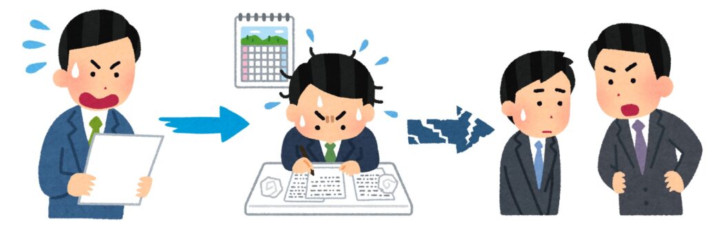 ・業務中にADHDの不注意によるミスが発生するも、ASDのコミュニケーションの困難さにより相手に助けを求められず状況が悪化する