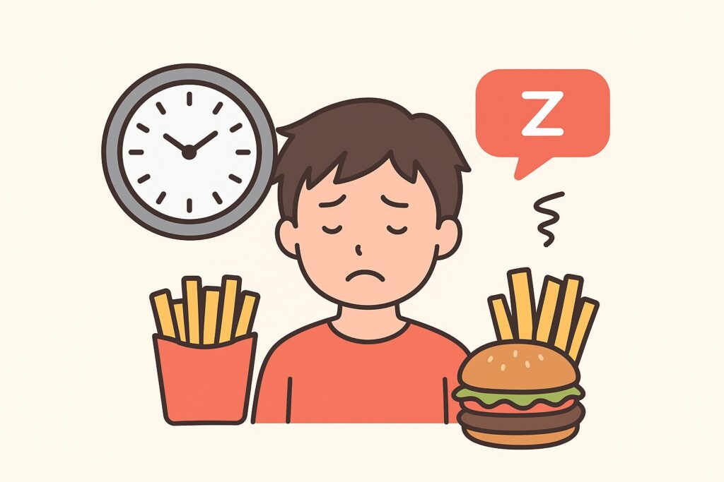 - 睡眠リズムの乱れ:夜遅くのファーストフード摂取は睡眠の質低下につながる