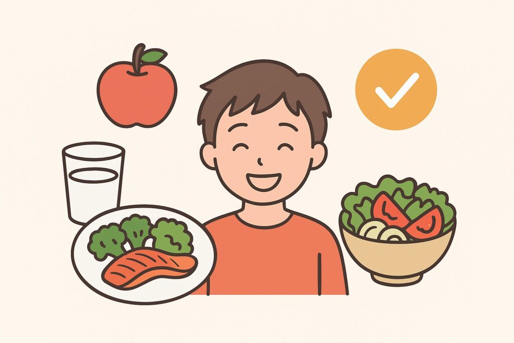 - 偏食への対応:ファーストフードに偏らないよう、少しずつ野菜や果物を導入