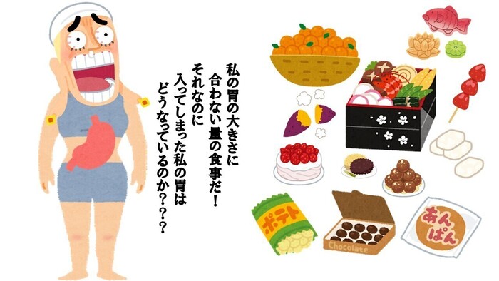 大人の胃袋のサイズって、握りこぶし2個分ぐらいだそうです。