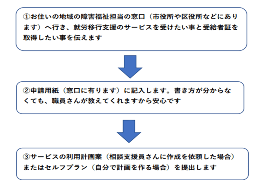 では、障害福祉サービス受給者証を取得する為の流れを簡単に説明します。