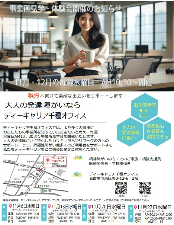 【11月】見学・体験会開催のお知らせ【ディーキャリア千種オフィス】