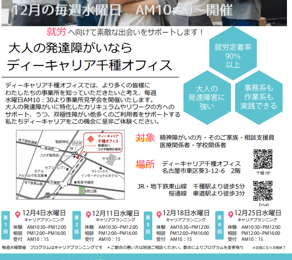 12月見学・体験会のお知らせ【ディーキャリア千種オフィス】