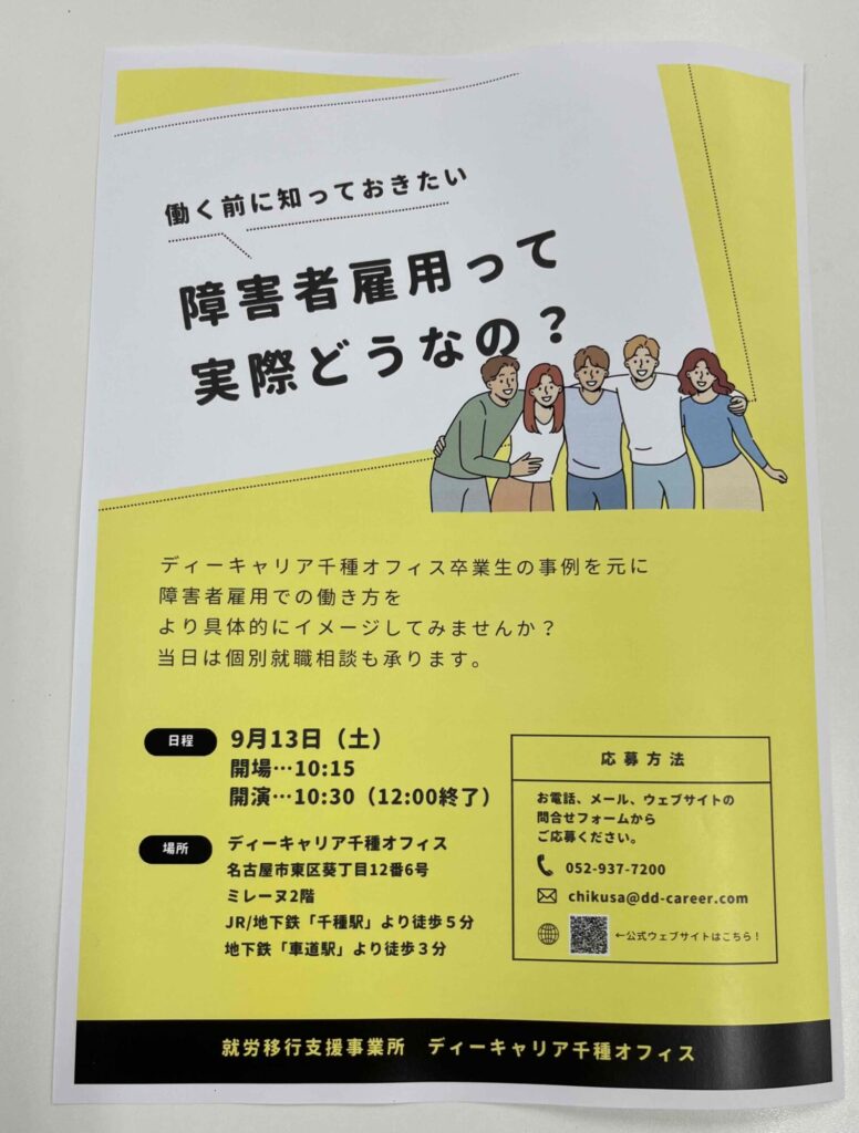 9月イベントのご案内【ディーキャリア千種オフィス】
