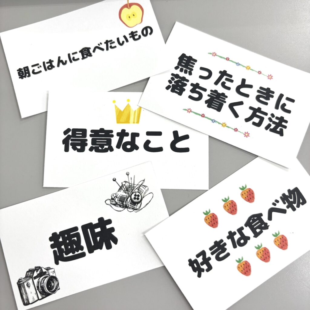 「好きな食べ物」や「行ってみたいところ」といったフランクな話題から