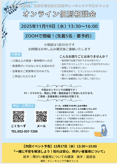 11月イベントのご案内【ディーキャリア千種オフィス】
