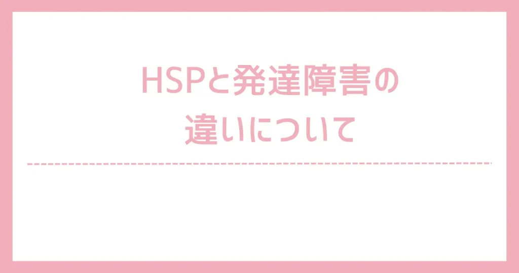 HSPって?発達障害とどう違うの? 今回はHSPと発達障害の違いをお伝えします。