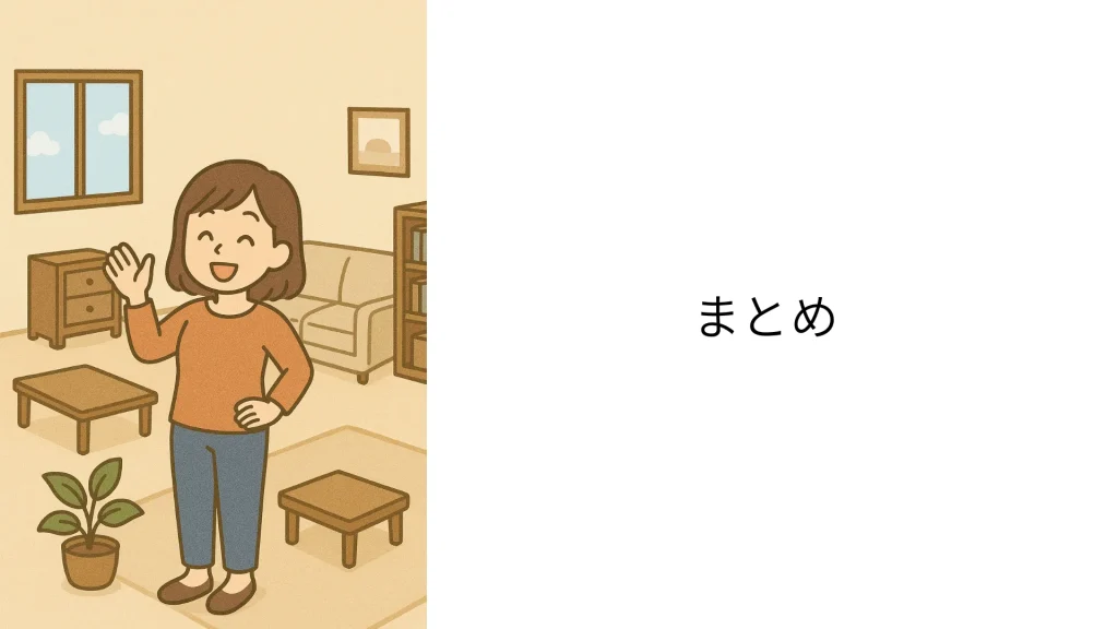 また、家事や掃除をひとりで抱え込まず、家族や支援者と一緒に仕組みを作ることで、負担を減らせます。