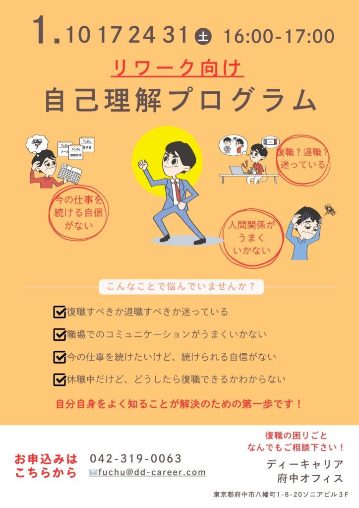今回は、ディーキャリア府中オフィスで実施しているリワーク向け自己理解プログラムについてお知らせいたします。