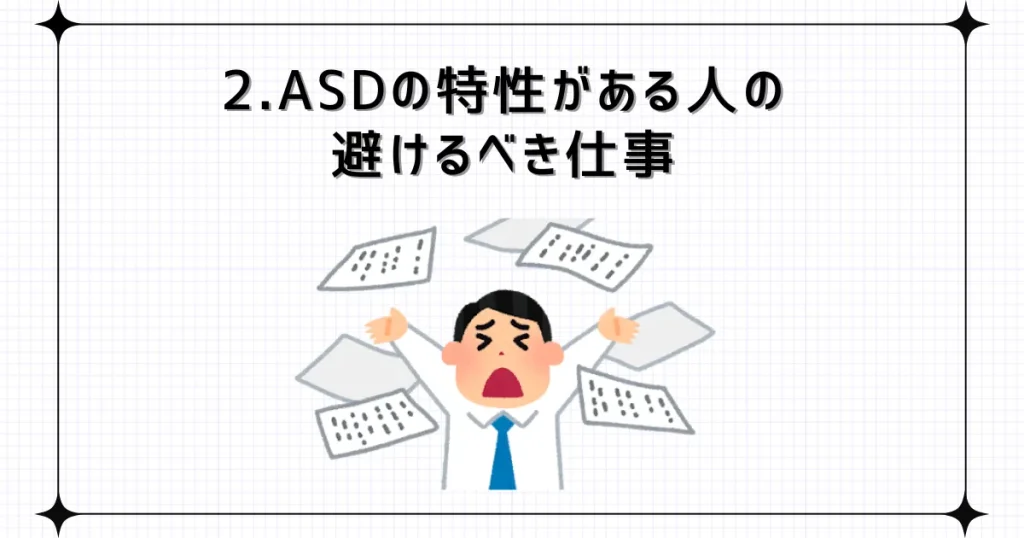 ASDの特性がある人にとって避けたほうが良い仕事はいくつかあります。