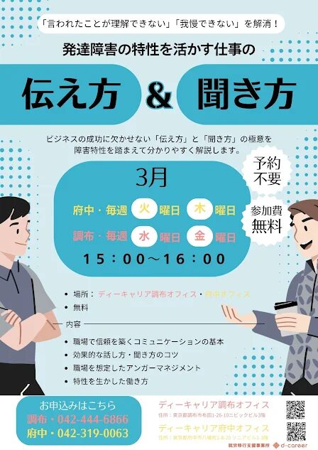 【イベント】【無料】発達障害の特性を活かす仕事の伝え方&聞き方