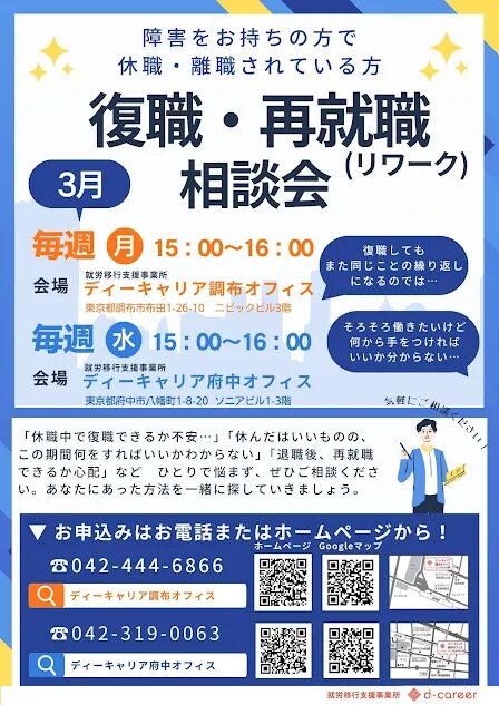 【イベント】【無料】復職・再就職相談会(障害をお持ちの方で休職・離職をされている方向け)