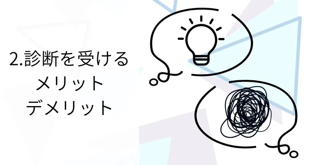 そこで、診断を受けるときに発生するメリットとデメリットについて以下の項目で詳しく解説していこうと思います。