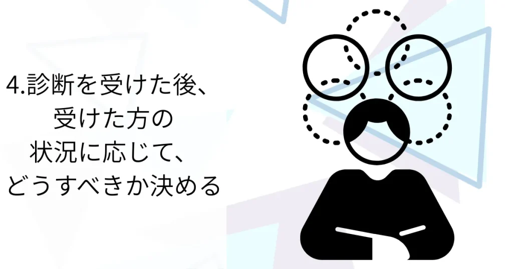 診断を受けた後、受けた方の状況に応じて、どうすべきか決める
