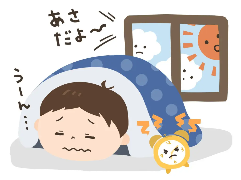 しかし、カーテンを閉め切って、朝になっても真っ暗な状態では、起きるきっかけになる朝日が遮られ、体も起きてきません。