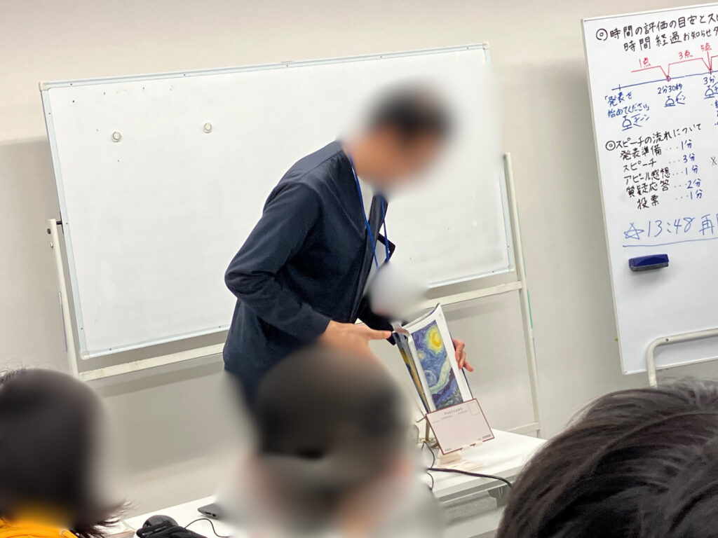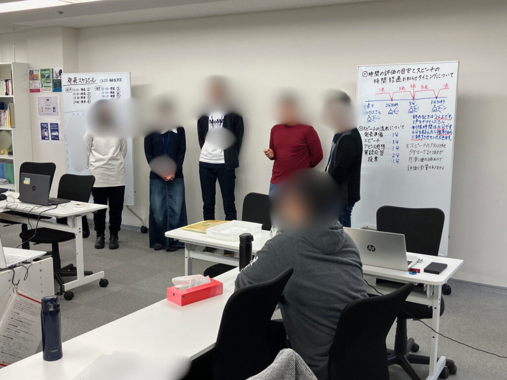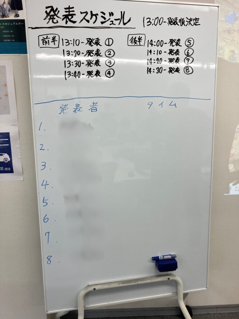 席の配置やそれぞれの役割の立ち位置、ホワイトボードの活用をしていきます。