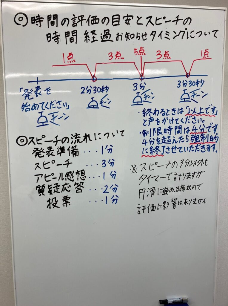 浜松オフィスの3分間スピーチ大会には明確に採点ルールがあります。