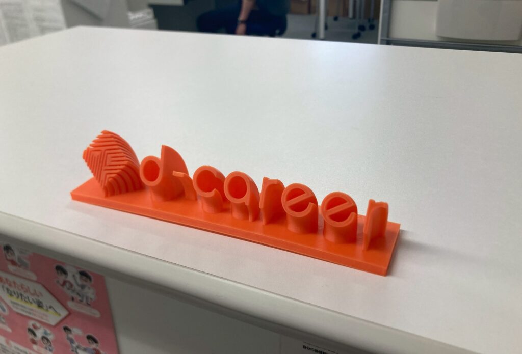 ▲上記の画像は利用者さんが「3Dプリンター」で作成してくださいました。ロゴが立体的になってめちゃくちゃ目立っていいですね!見学・体験に来られた際はぜひ見てみてくださいね。