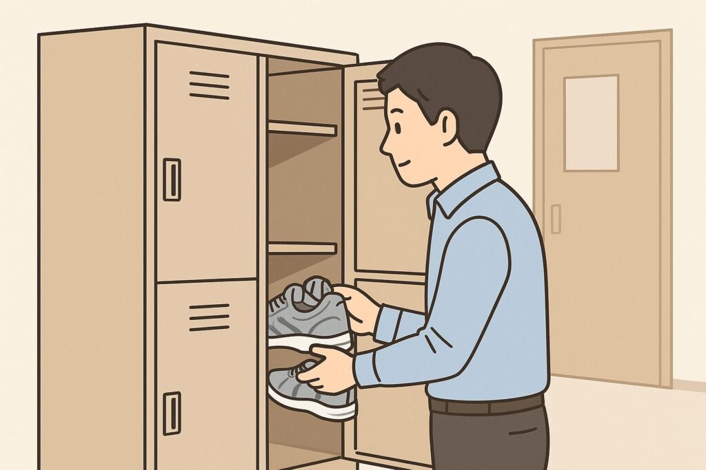 災害時に備えて「歩きやすい靴」をロッカーへ