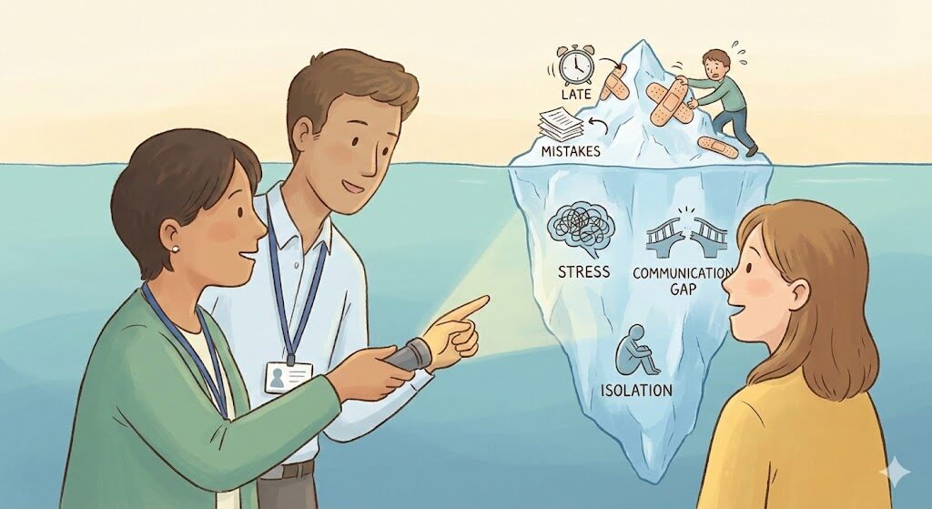 こうした「本当の原因」を見つけることが、問題解決の第一歩です。表面的な問題だけを見て対策をしても、根本の原因が残ったままだと、また同じつまずきが起きてしまうことがあるためです。