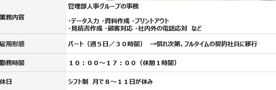 就職先の業種:管理部人事グループ事務職