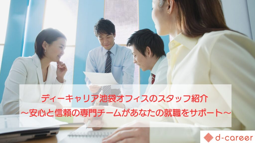 ディーキャリア池袋オフィスのスタッフ紹介 ~安心と信頼の専門チームがあなたの就職を支援します~