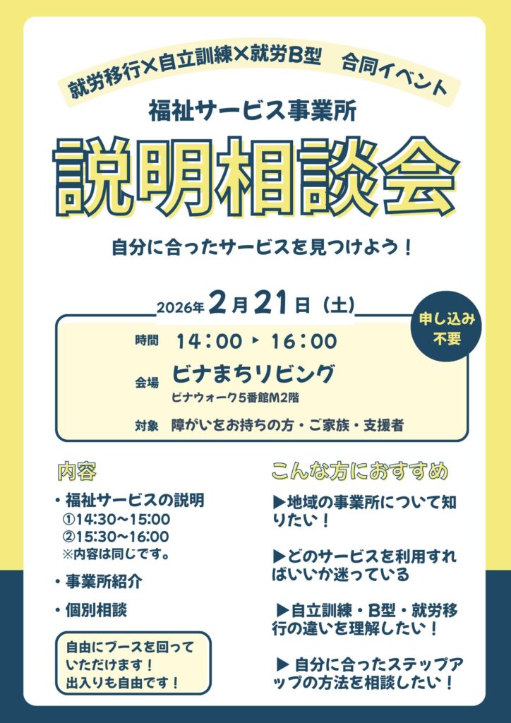 2026年2月21日(土)に、就労移行支援・自立訓練・就労継続支援B型の5事業所合同で、
