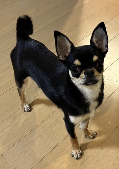 そこのペットコーナーで出会ったのが、新しい家族になった子犬のチワワでした。ブラックアンドタンのスムースヘアのチワワ君です。