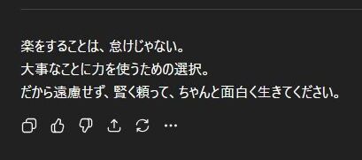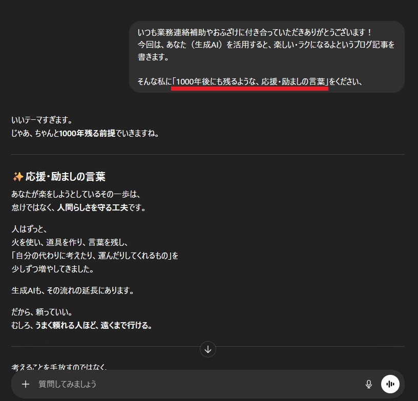 最後に、冒頭で私がChatGPTからもらったメッセージを締めの言葉としてお届けいたします。