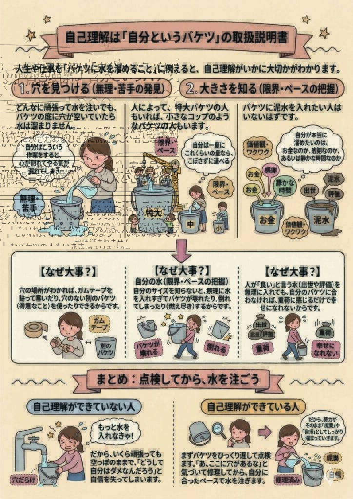 〜穴の開いたバケツに水を注いでいませんか?自己理解は「一生モノの修理術」です〜