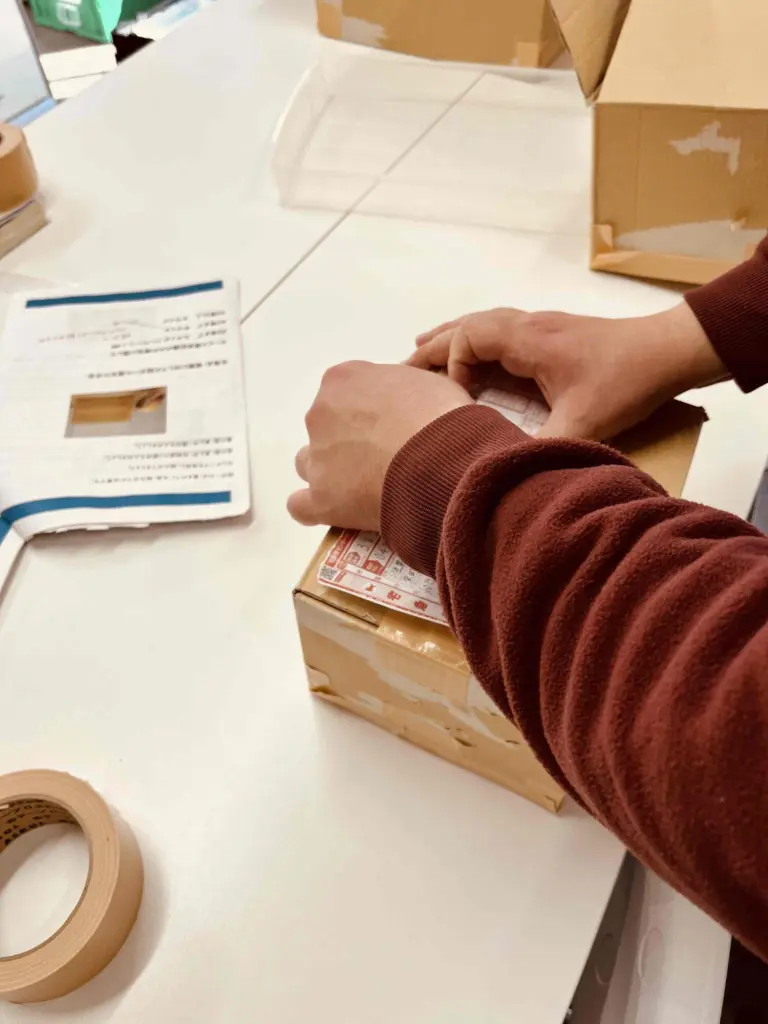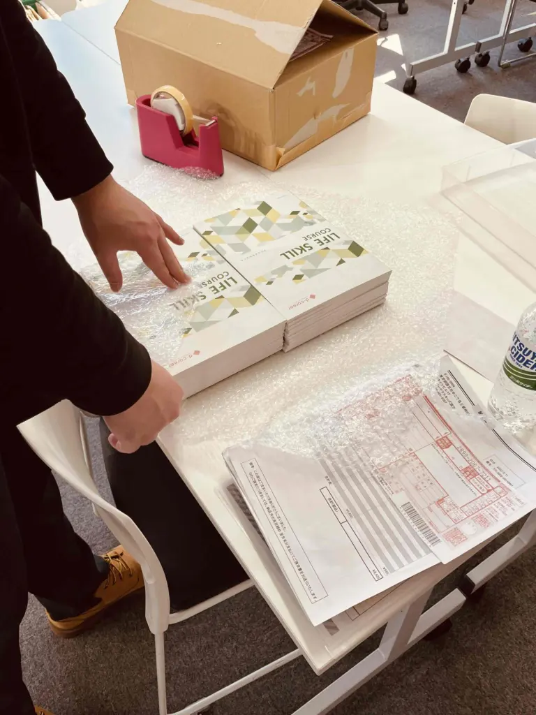 (何度も練習で使っているため段ボールがすぐボロボロになります・・笑)
