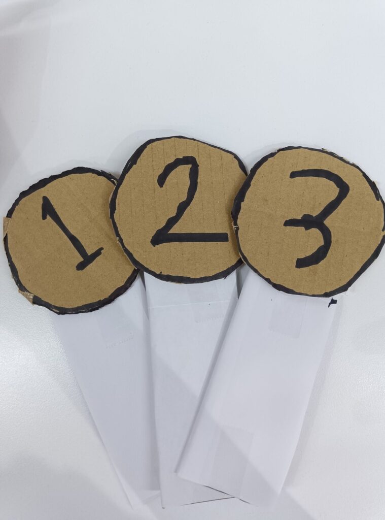 また、3択問題なのでクイズに使用する札も作成しました!