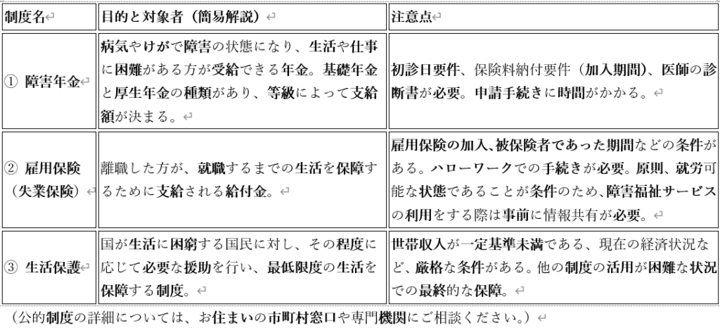 (公的制度の詳細については、お住まいの市町村窓口や専門機関にご相談ください。)