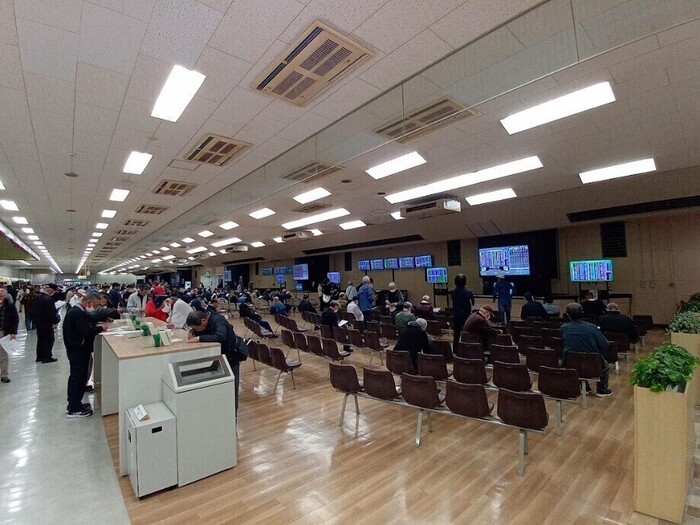 場外レースのライブ映像と予想オッズを交互に睨んでいる方々がいて、