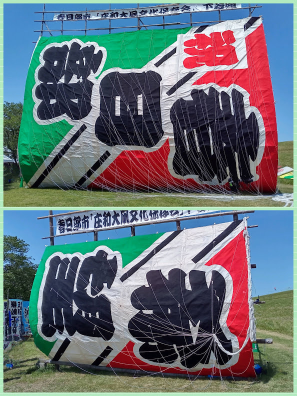 何とか1時間遅れて一つ目の大凧(“春日部”)あげが始まりました。