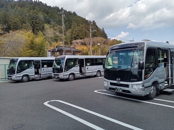 植樹会場となる山奥に行くためのシャトルバスが何台も待っていました。