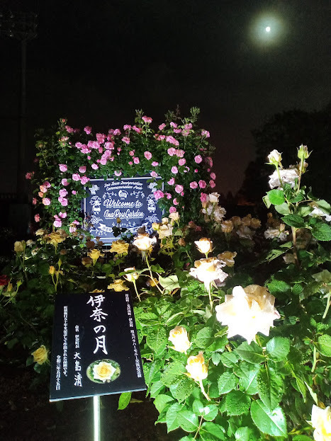 5月連休明けの週末、夜のバラ園のライトアップを