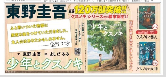 「少年とクスノキ」 文:東野圭吾 絵:よしだるみ 発行:実業之日本社