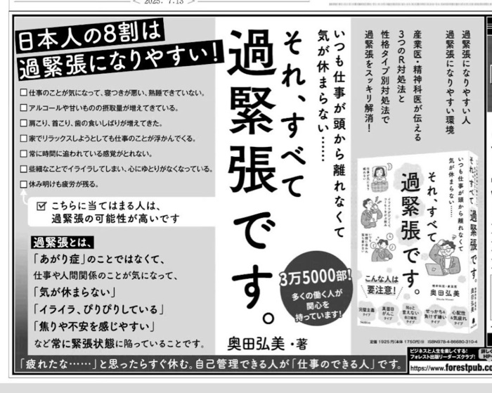 「それ、すべて過緊張です。」 奥田弘美著 フォレスト出版 https://www.forestpub.co.jp/author/okuda/book/B-2165