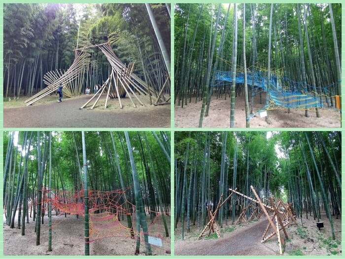 竹林の中にはブランコやアスレチックのような遊具があり、
