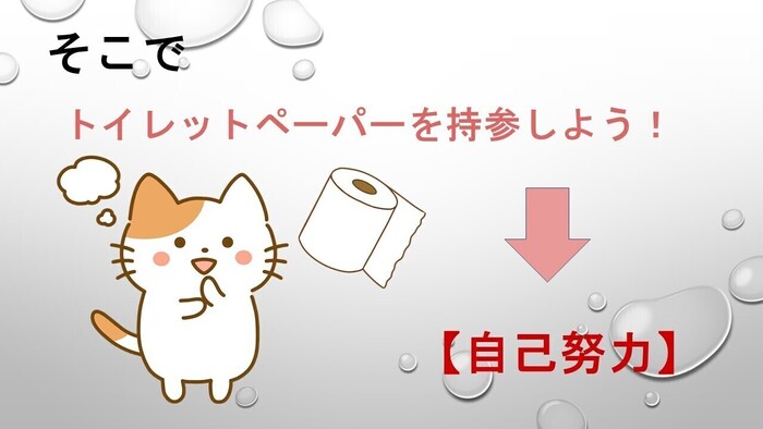 私は【自己努力】として自分自身でトイレットペーパーを持ってこようと思いました。