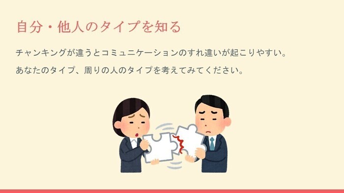 自分のタイプ、相手のタイプをよく知ることが重要ですし、