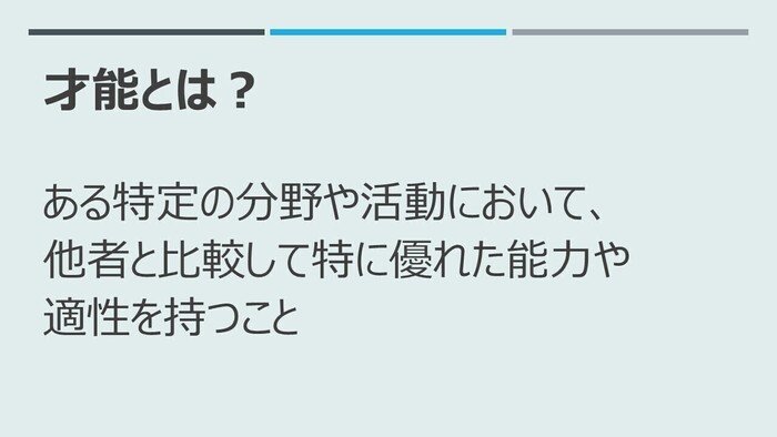 「才能」だけだと努力をしなければ「スキル」が身につかず、
