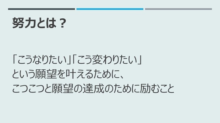 努力とは、「こうなりたい」「こう変わりたい」という願望を叶えるために、
