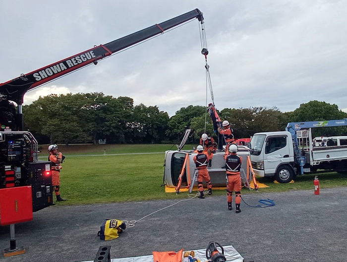 その中でも倒壊した車の中から要救護者を救出する訓練は見応えがありました。