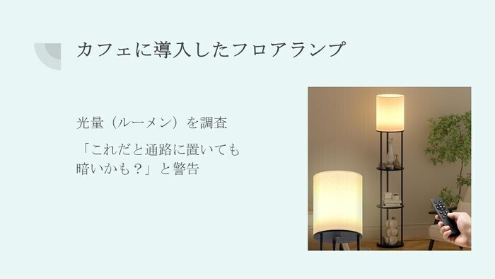 たとえば、先日カフェにフロアランプを導入しました。